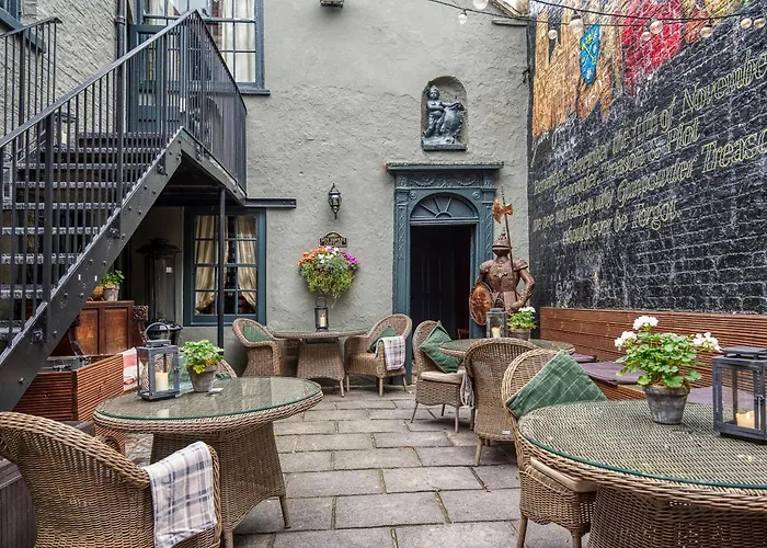 The Guy Fawkes Inn is a historic inn located next to York Minster, renowned as the birthplace of the famous plotter Guido Fawkes. It features 13 individually decorated rooms, many offering views of the Minster. The inn retains original features like gas lighting and real log fires, creating a cozy atmosphere. Traditional pub-style dining is offered, featuring locally sourced ingredients and a selection of real ales. Its unique charm and historic ties make it a must-visit in York.